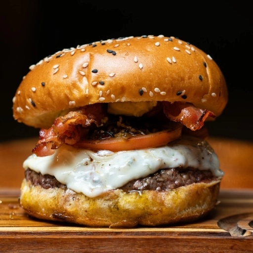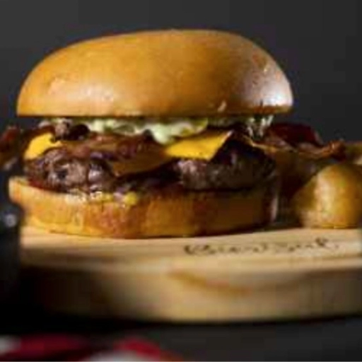 Pão brioche selado na brasa + Blend 150gr + Queijo cheddar + Bacon defumado na parrilha + molhos( maionese da casa, cat... Ver completo