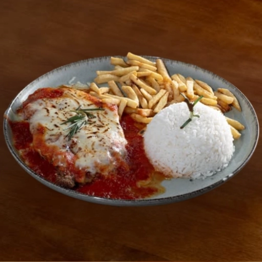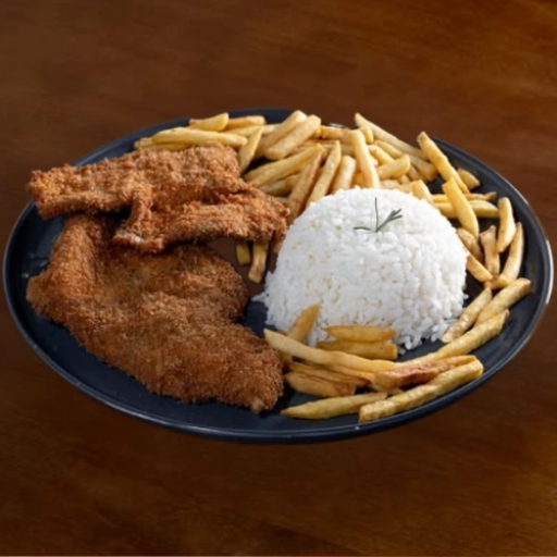 Arroz soltinho, fritas crocantes e suculenta alcatra Angus empanada na crocante farinha Panko. Completo com um delicioso... Ver completo