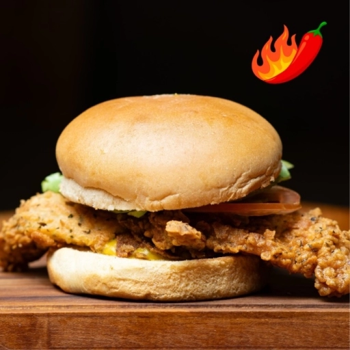 Pão de brioche selado na brasa + filé de peito de frango crocante empanado + geléia de pimenta + alface + tomate + mo... Ver completo
