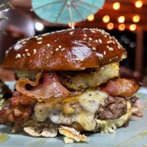 Pão brioche premium com gergelim, burguer de 150gr, mussarela, bacon, ABACAXI grelhado na parrila caramelizado no mel, ... Ver completo