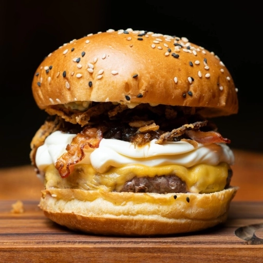pão brioche selado + blend 150gr + 2 ovos + cheddar + maionese de páprica defumada + molhos (ketchup e mostarda)